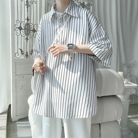 Streetwear Fashion Men Long Sleeve Striped Polo Shirts