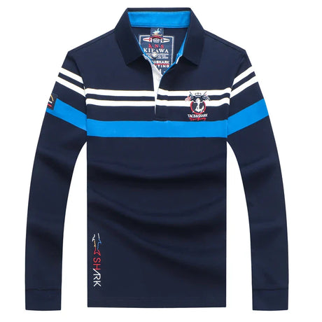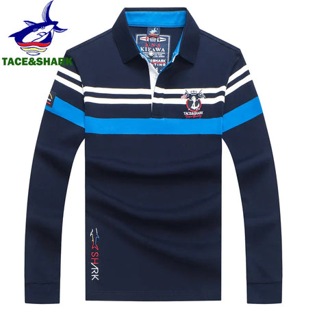 TACE&SHARK Brand Shark Embroidery Long Sleeve Polo Tops