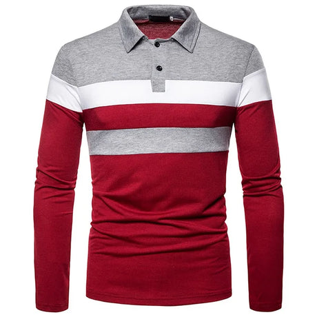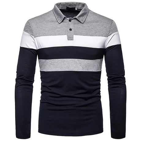 Men's Long Sleeve Contrasting Colors Polo T-shirt Casual