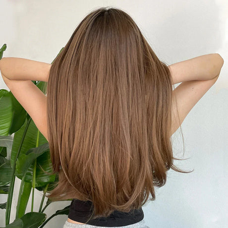 Blonde with Brown Highlight Long Straight Synthetic Wigs