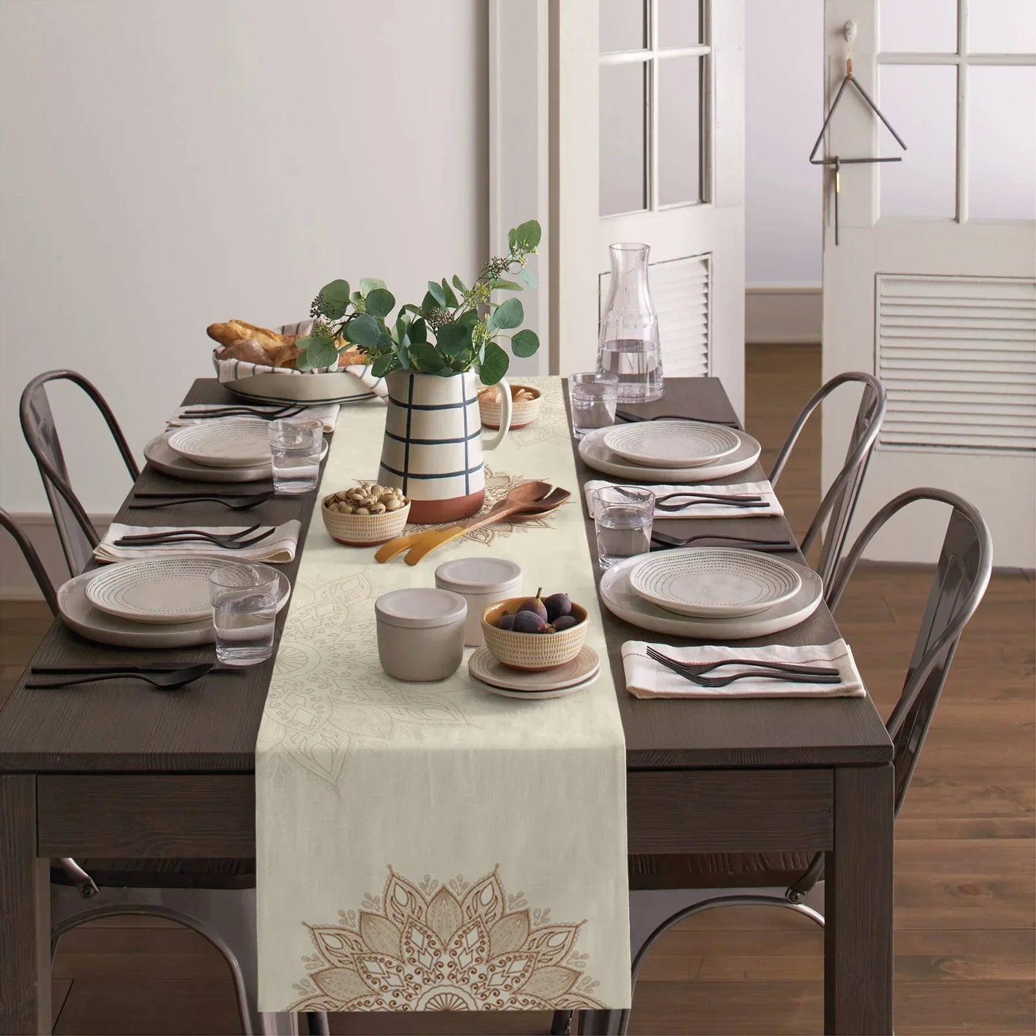 Mandala Flowers Linen Table Runner Kitchen Table Decoration