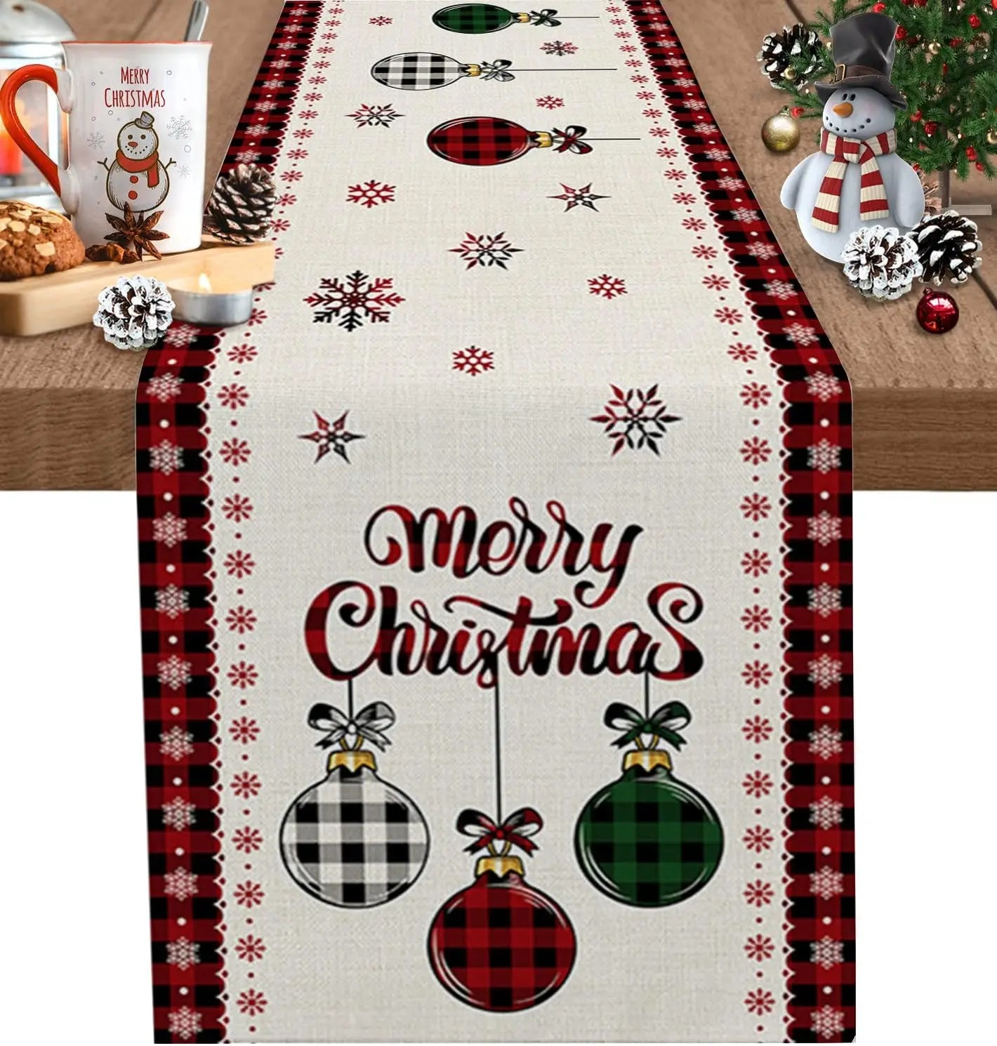 Merry Christmas Tree Ball Linen Table Runners Holiday - 150x33cm 59x13inch / 11 / VIP Price is backordered and will ship as soon as it is back in stock.