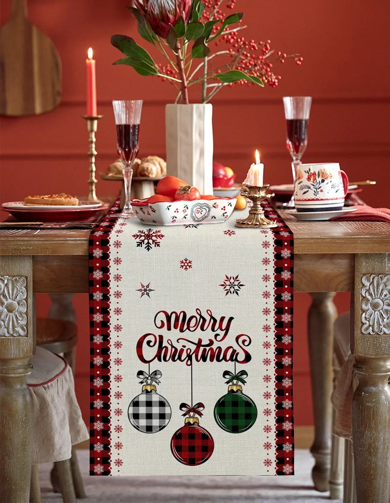 Merry Christmas Tree Ball Linen Table Runners Holiday
