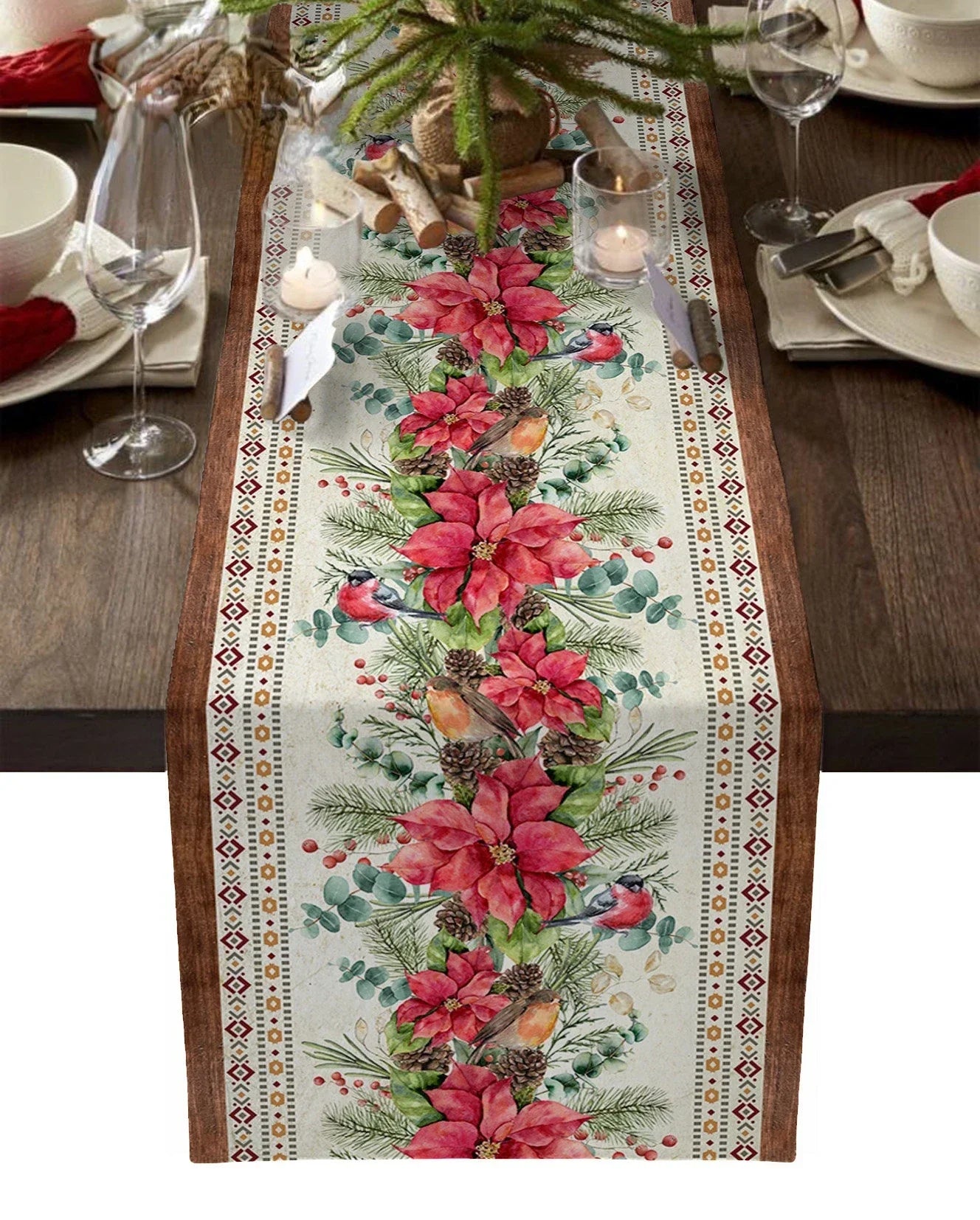 Modern Elegant Table Runner Eucalyptus Berries Robin Table