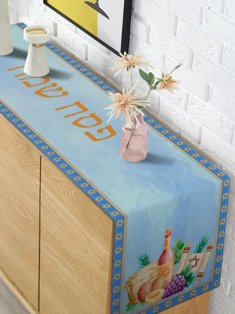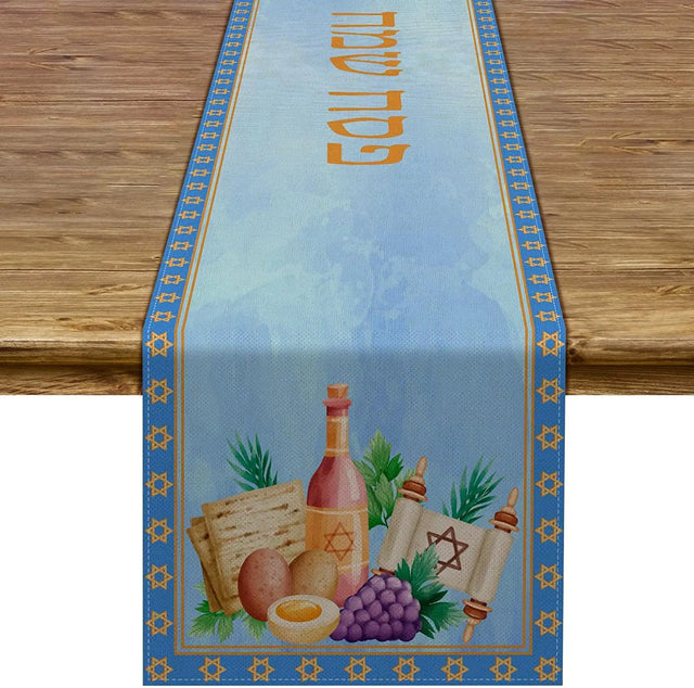 Passover Linen Table Runner Pesach Seder Matzoh Red