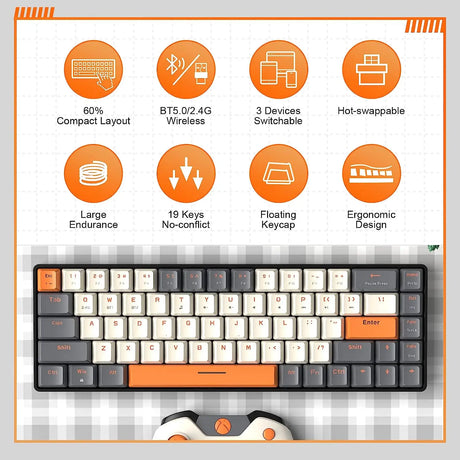 60% Wireless Mechanical Keyboard Bluetooth Dual Mode Hot-Swappable