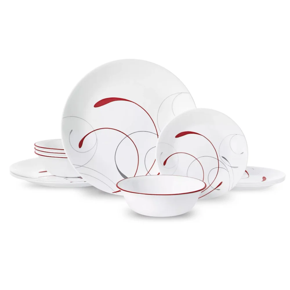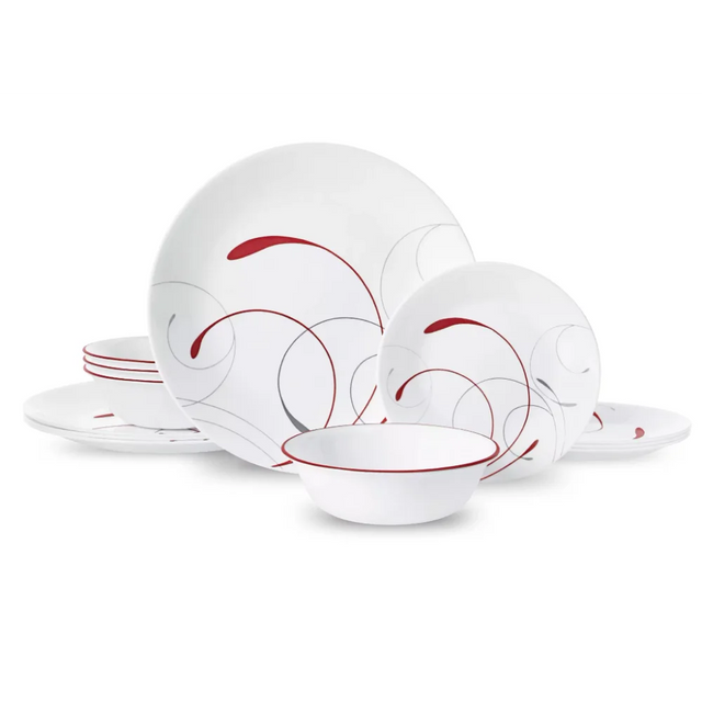 Splendor, White and Red Round 12-Piece Dinnerware Set