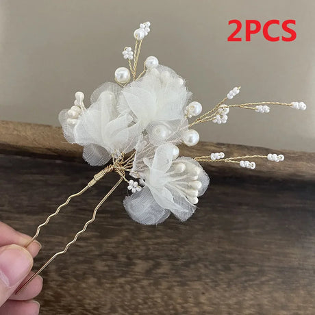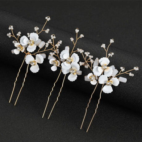 3PCS Flower Hairpin Bride Headdress For Women Pearl