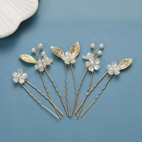 5pcs U-shape Hairpin Set For Women Pearl Floral