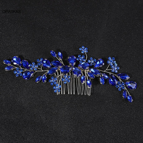 Blue Crystal Hair Comb Bride Tiaras For Women