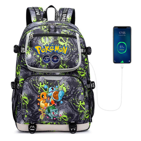 Pokemon Squirtle Cartoon School Bag USB Charging Large
