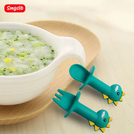 2Pcs/Set Baby Children Spoon Fork Set Soft Bendable