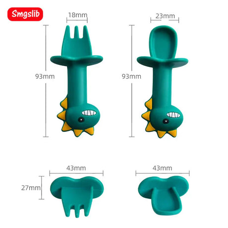2PCS Cute Baby Learning Spoons Utensils Set Food