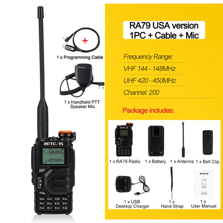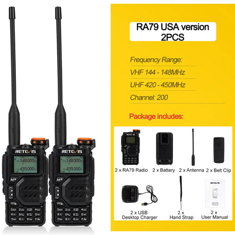 Retevis RA89 Walkie Talkie USB C Charge IP68