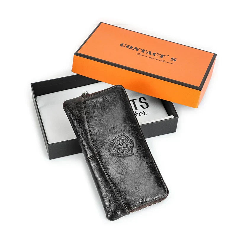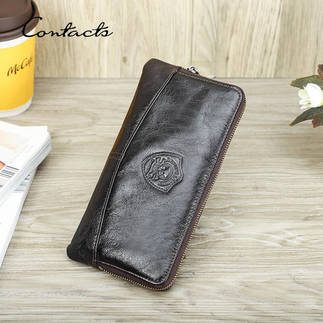 CONTACT'S Genuine Leather Wallets for Women Long Zipper Fashion Women's Purses Skull Pattern Card Holder Coin Pocket Female Bags