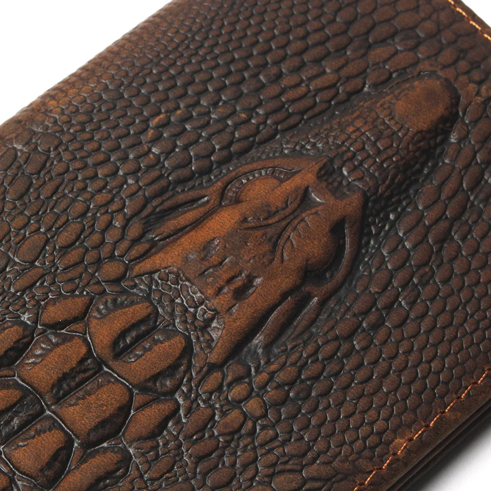 Mens Crocodile Head Pattern Wallet Crazy Horse 100% Genuine Leather Purse Top Grade Soft Long Branded Coin For Men