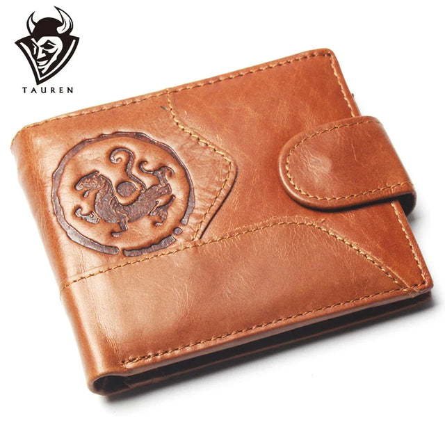 New Coin Purse Cheap Mens Retro Tiger Pattern Wallet Genuine Leather For Men Card Holder Strong