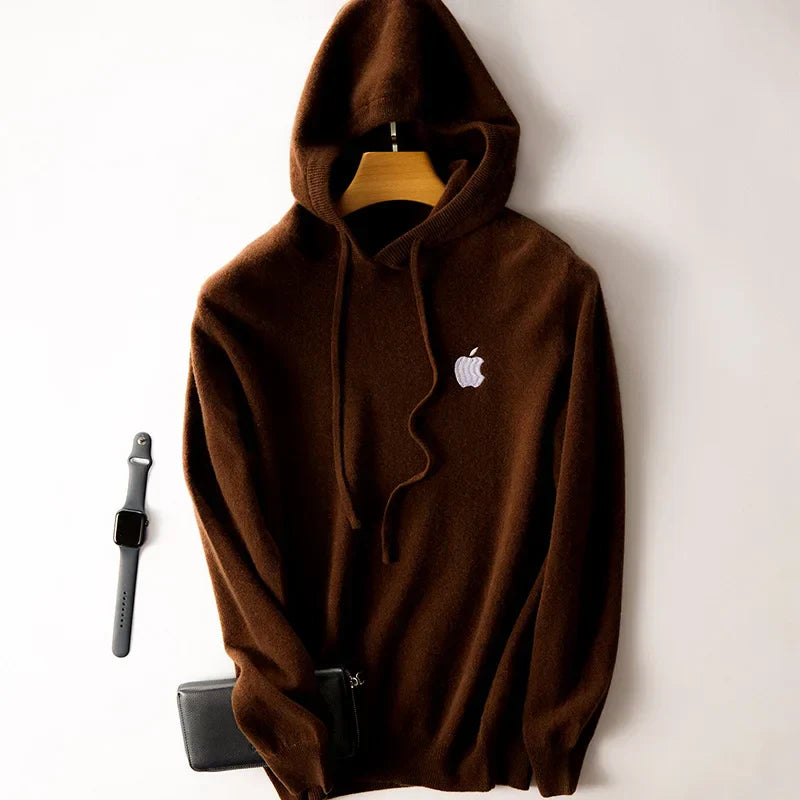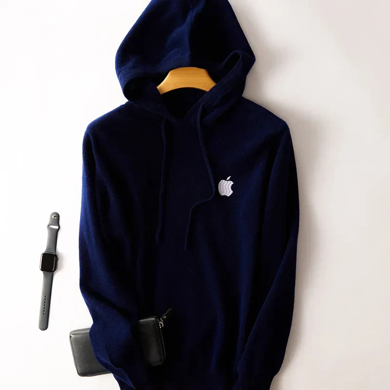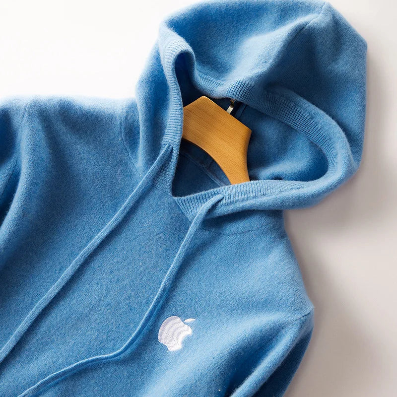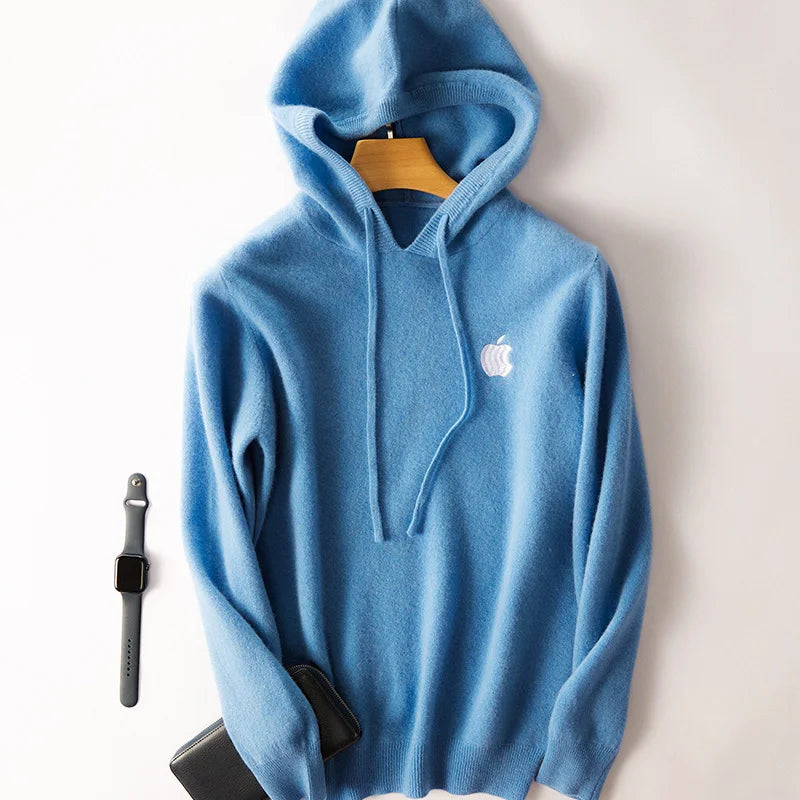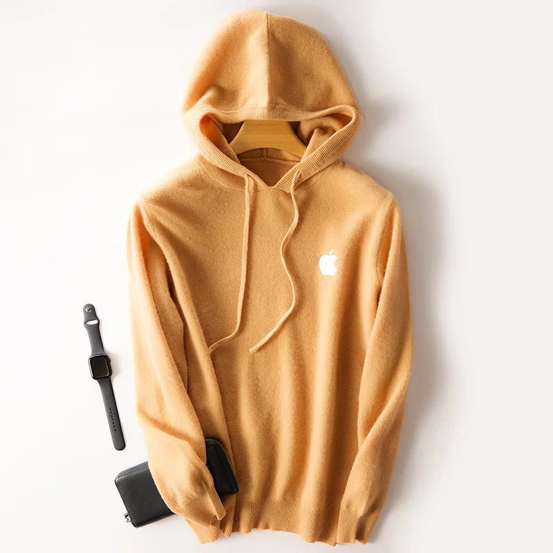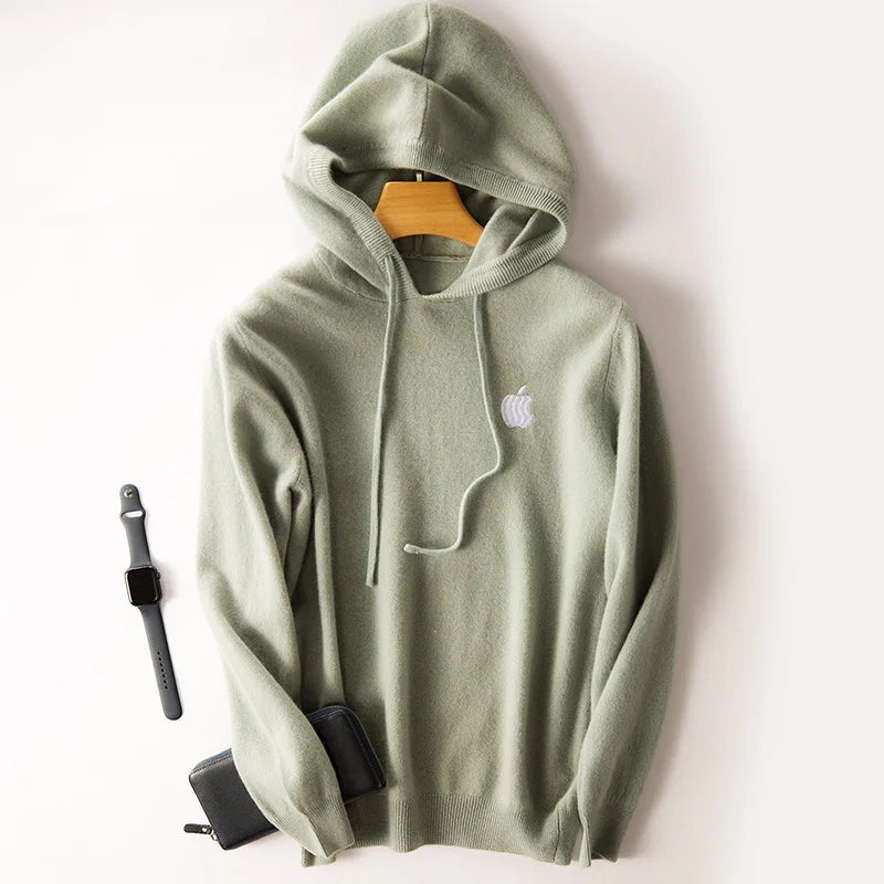 100% Cashmere Hoodies Tracksuit Apple Print Hooded Pullover