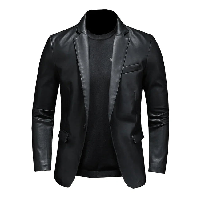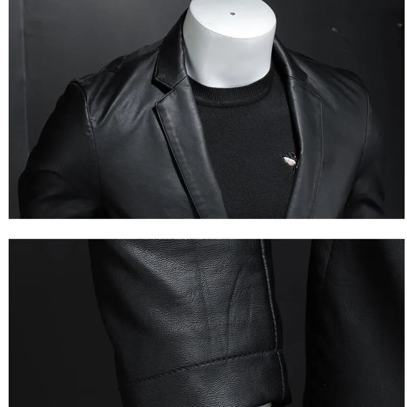 2023 New Suit Oversized Leather Jacket Business Fashion