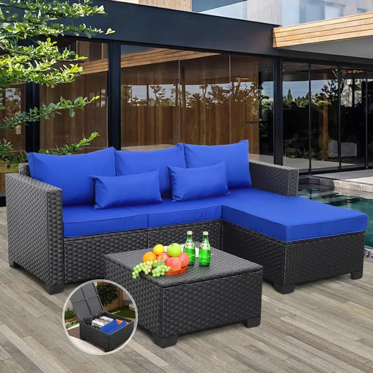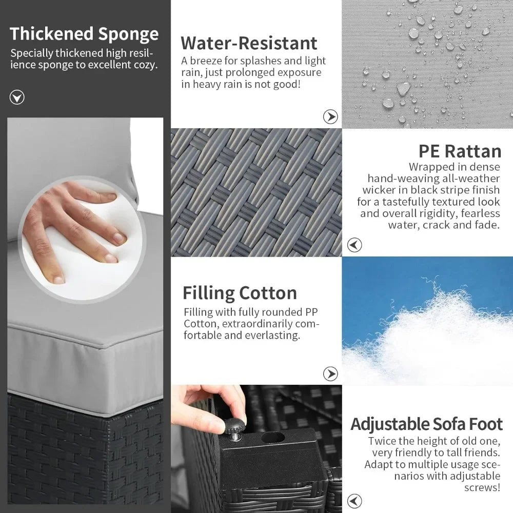 3 Pieces Patio Furniture Set Outdoor Sectional Wicker