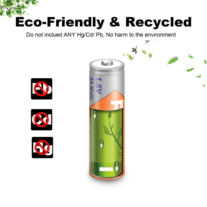 4/8/12PC 1.6V Ni-Zn AA Rechargeable Batteries 2A 2500mWh