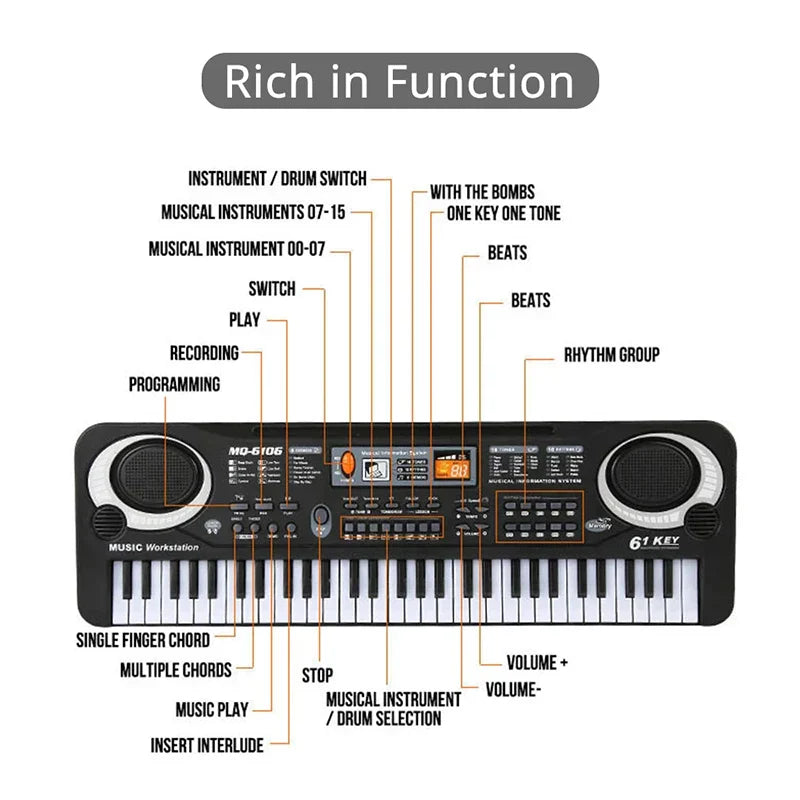 61 Keys Kids Electronic Keyboard Piano With Microphone
