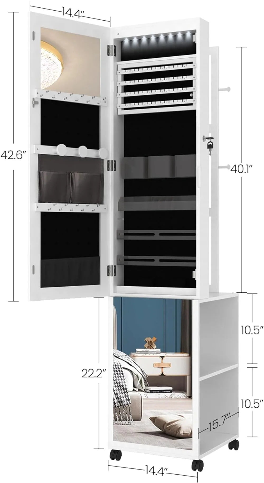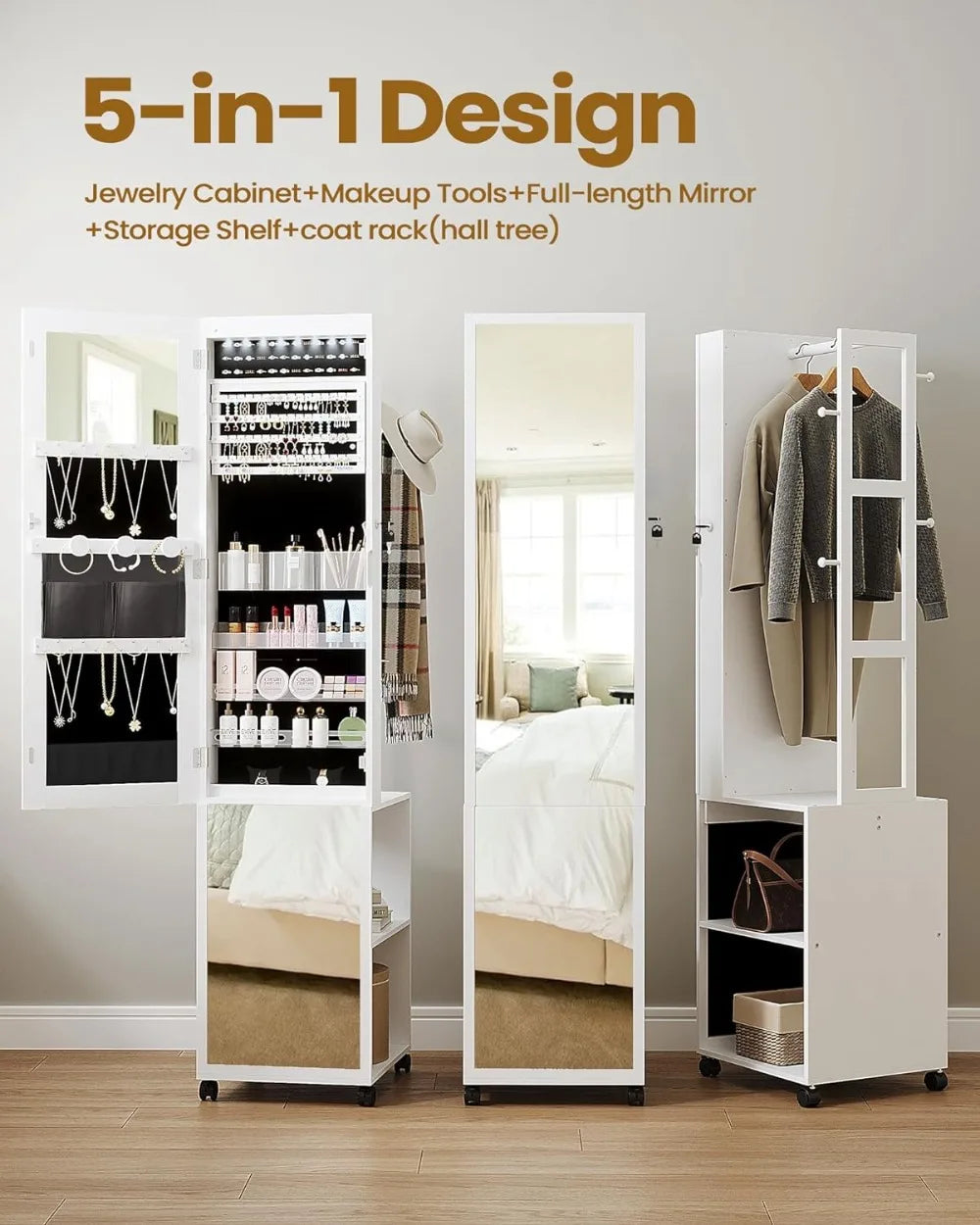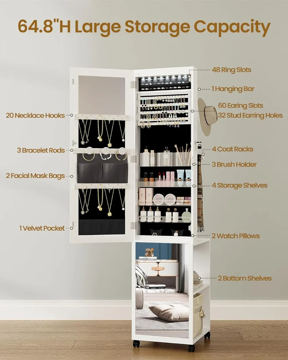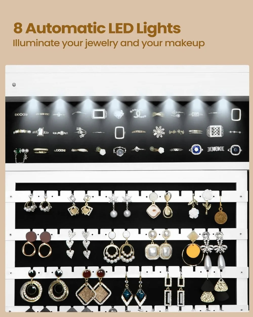 8 LEDs Jewelry Cabinet Armoire, 64.8-inch Jewelry Organizer,