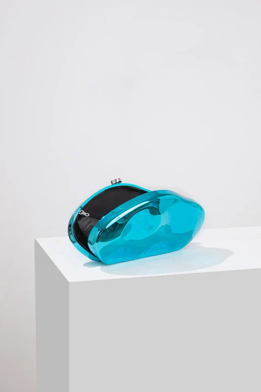 evening bag : Acrylic shell shape clutch bag metal shiny gold silver blue women evening party cute shell purse handbag 2024 new