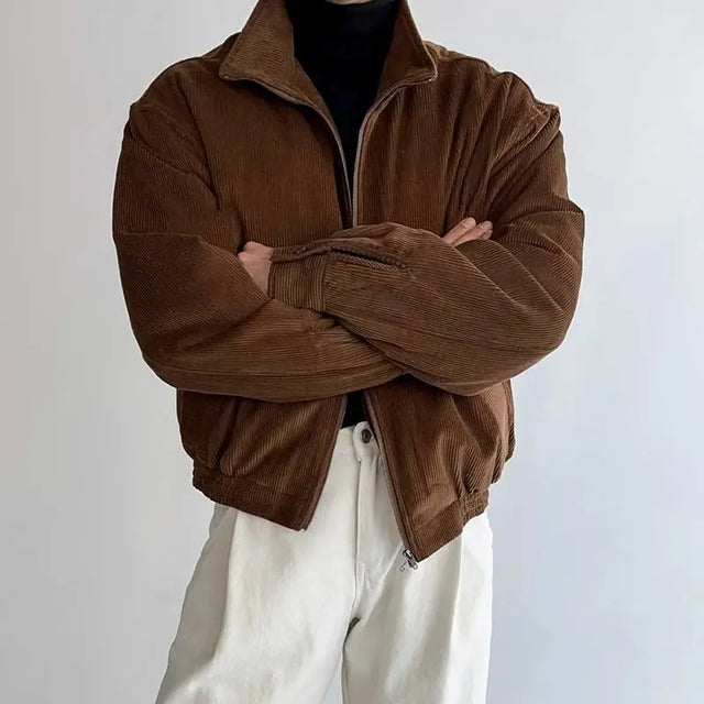 Autumn Winter Solid Corduroy Stand Collar Short Jacket