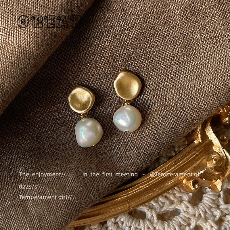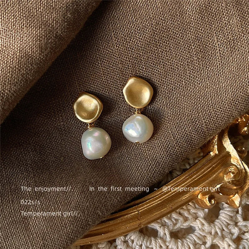 Baroque Shaped Irregular Freshwater Pearl Matte Stud Earrings - Gold / VIP Price is backordered and will ship as soon as it is back in stock.