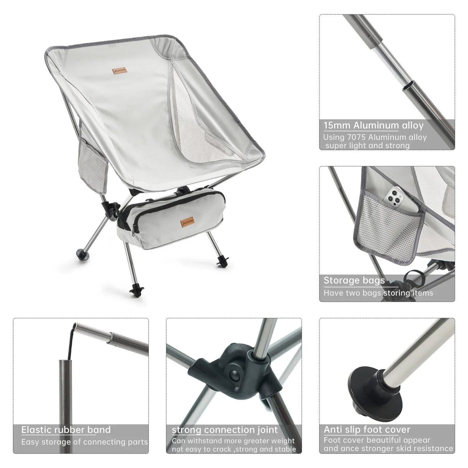 BSWolf Folding Chair Ultralight Detachabl Portable Camping Chair - Grey / VIP Price is backordered and will ship as soon as it is back in stock.