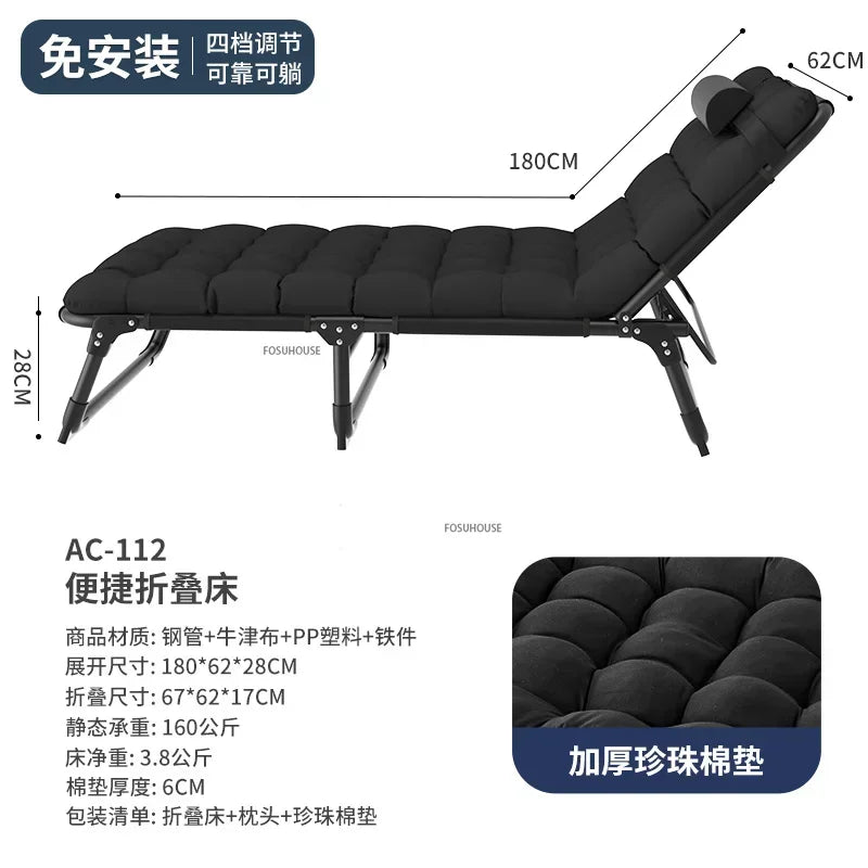 Comfortable Folding Bed with Mattress Single Lunch Rest