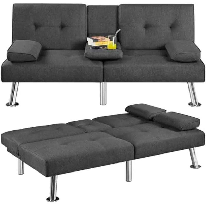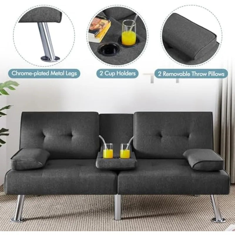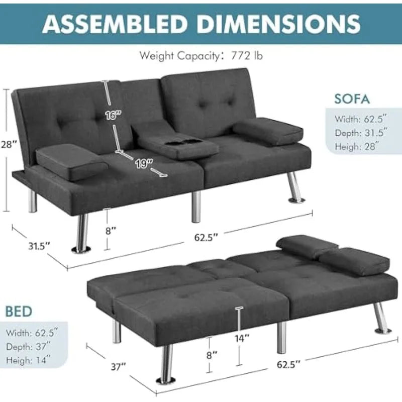 Convertible Sofa Bed Adjustable Fabric Couch Sleeper Modern