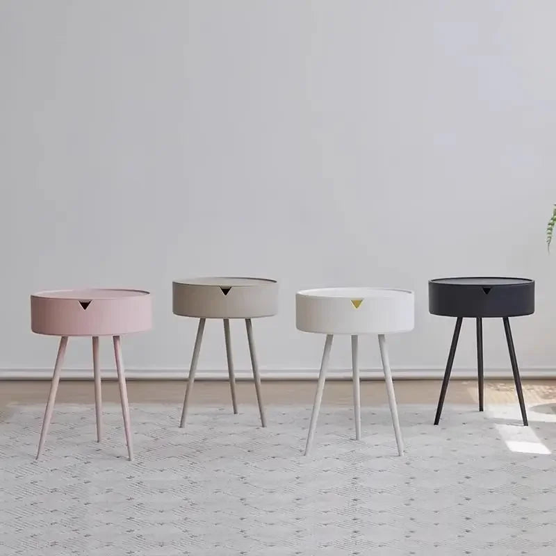 Cream style round bedside table modern bedroom storage