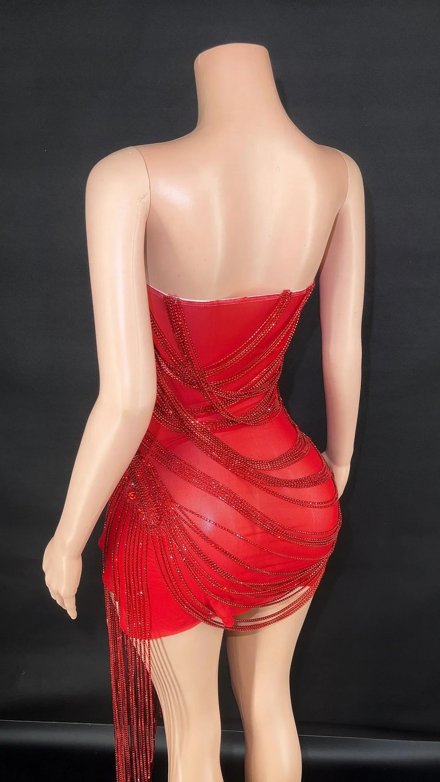 Customized New Ladies Sexy Tassels Strapless Mesh See - CHINA / 2 / Red is backordered and will ship as soon as it is back in stock.
