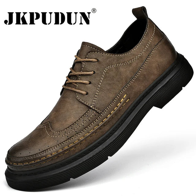 Genuine Leather Men Casual Shoes Luxury Men Oxfords Shoes British Style Brogue Shoes Lace-up Men Leisure Shoes Plus Size 38-46