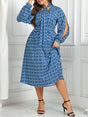 GIBSIE Plus Size Bow Tie Neck Belted Print - Blue / XL / VIP Price is backordered and will ship as soon as it is back in stock.