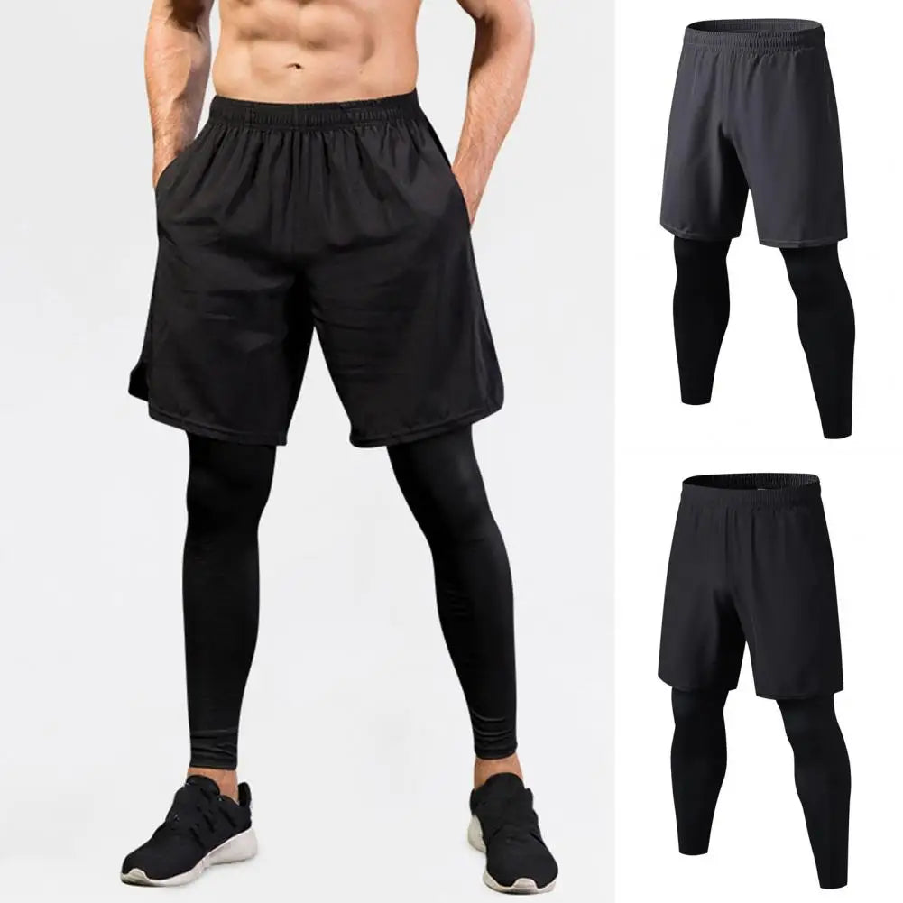Men Fake Two-Piece Sport Pants Fitness Jogger Training