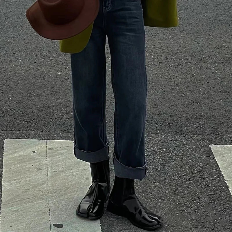 New PU Leather Unisex Tabi Boots Men’s Women’s Split Toe Chelsea Boots Women Tabi Shoes Women Fashion Ankle Boots Botas Mujer