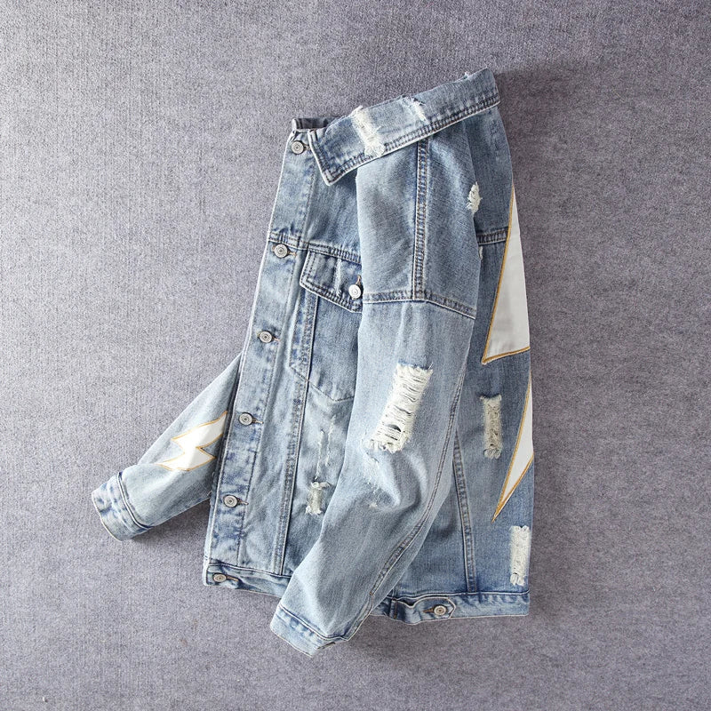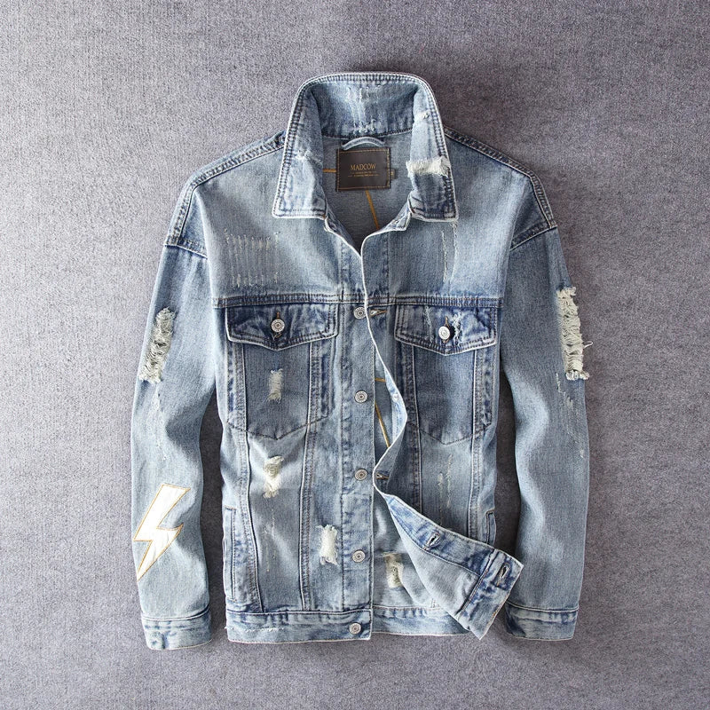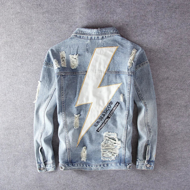 Streetwear Fashion Men Jackets Retro Blue Flash Patch