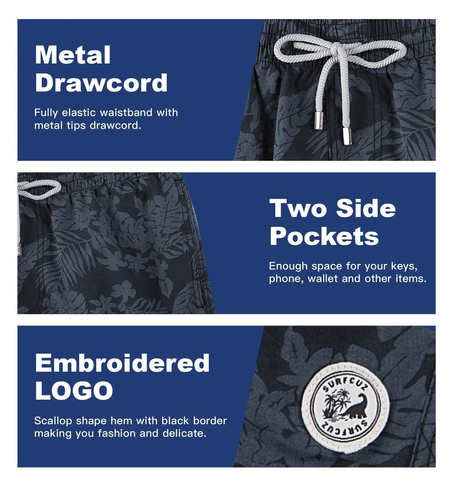 SURFCUZ Mens Swim Shorts Quick Dry Beach Board Shorts with Mesh Lining